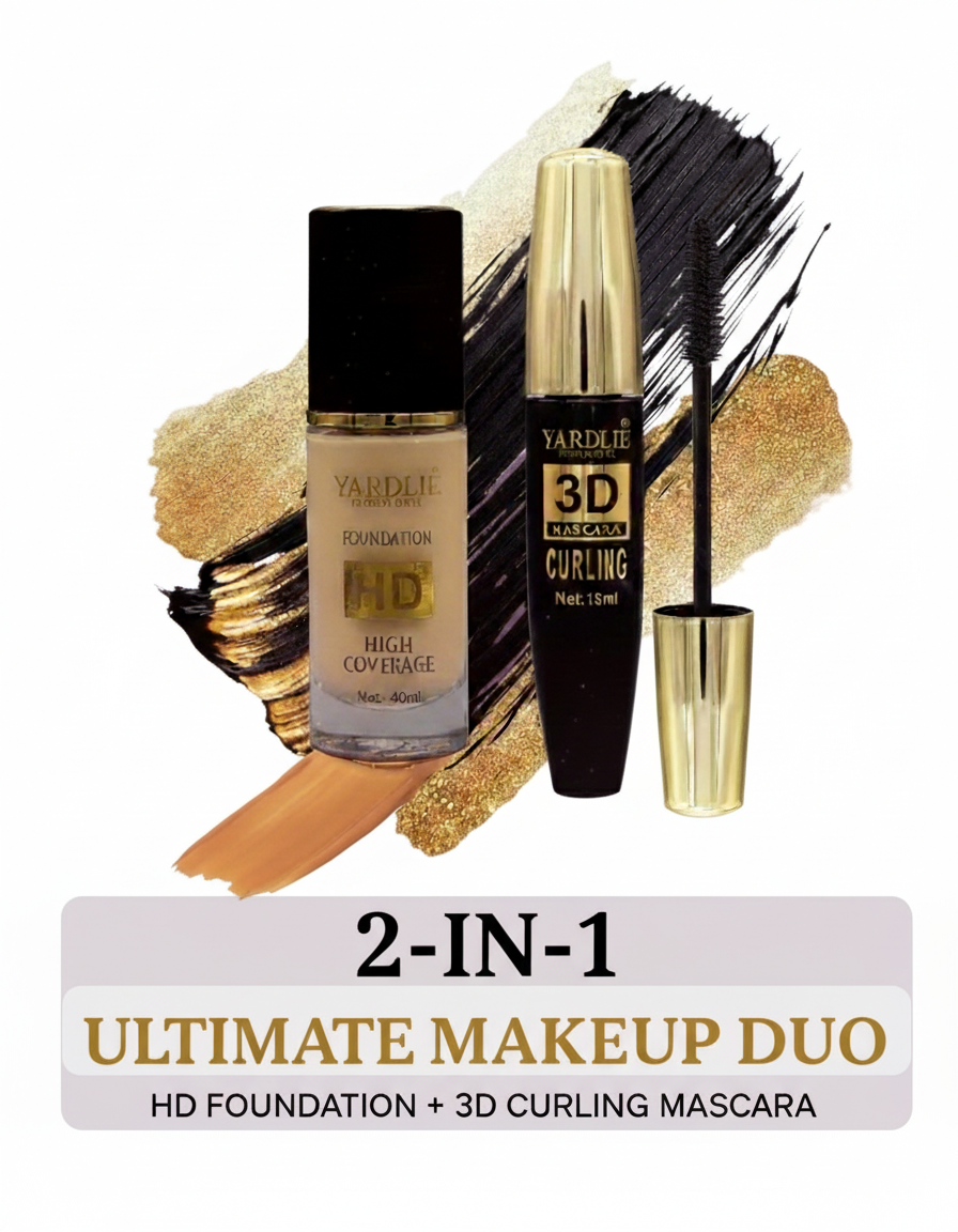 Yardlie UK presents the ultimate duo for a flawless face and captivating eyes. Our lightweight foundation gives you smooth, natural coverage that hides imperfections, while our volumizing mascara provides instant lift and bold curl. Together, they make achieving an effortless, unforgettable look simple.